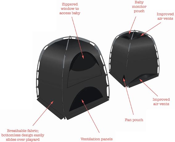 • New airflow design with a pocket for your baby monitor, and a pocket for a fan.